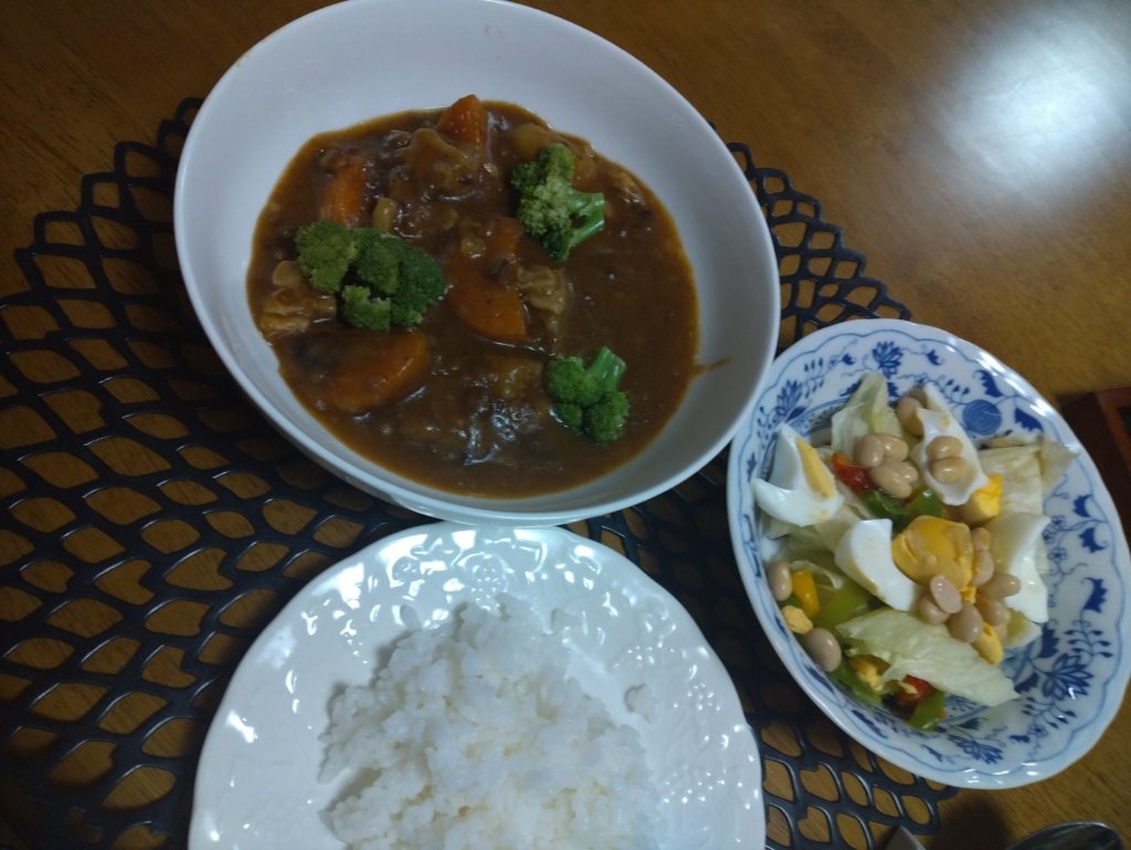 レタス 赤黄色パプリカ 胡瓜 蒸し大豆 ゆで卵