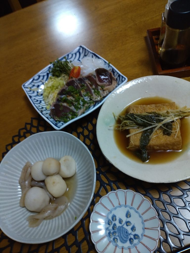 イカソーメン カツオタタキ レタス ブロッコリースプラウト