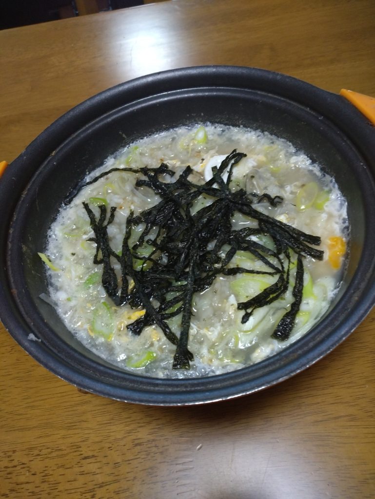 お昼はカキ雑炊にしました。