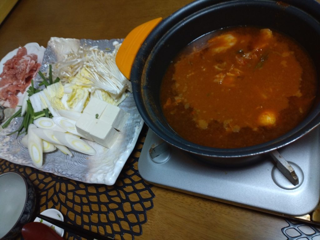 モヤシ 白菜 エノキ 白ネギ 豆腐 豚肉 牡蠣 餅