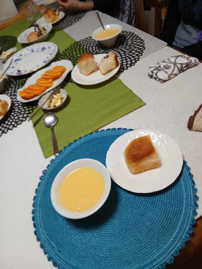 なんだか4人さん気圧の加減で心が乱れて?(笑)ちょっとクロワッサンの練りこみ 折り込みにてこづってバターが飛び出したりしましたが出来上がりはOKでした。