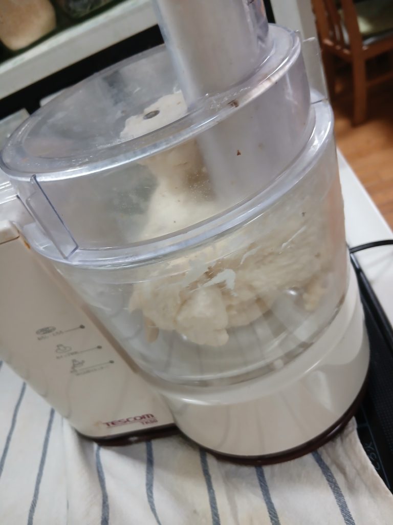 フードプロセッサーで300gの粉を捏ねています